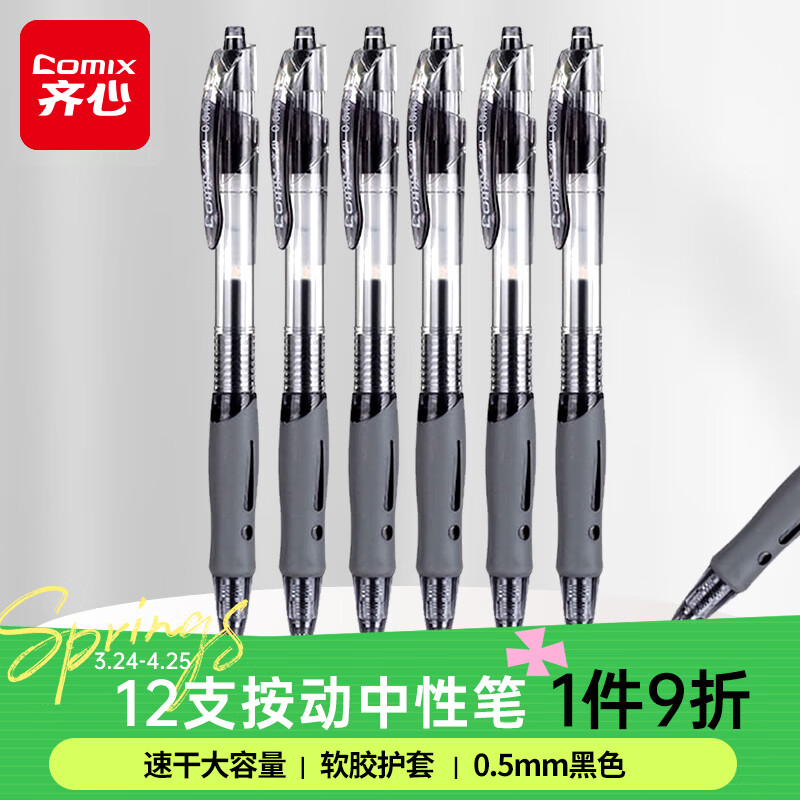 齐心(Comix)【热门商品】顺滑速干中性笔按动签字笔水笔办公文具 0.5mm子弹头 黑色 12支装 EB18