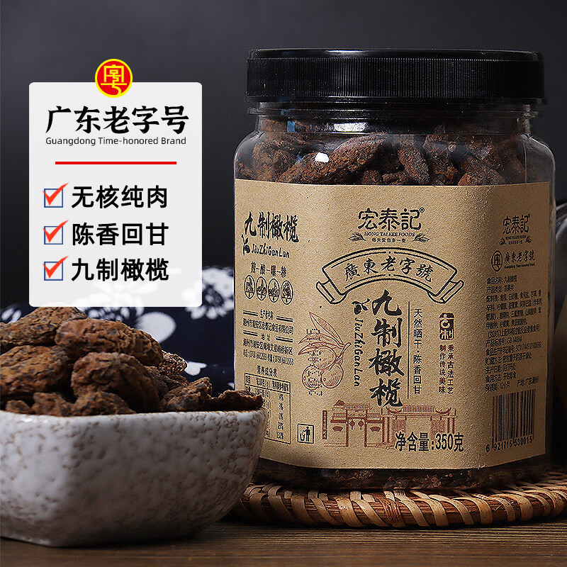 宏泰记无核九制甘草橄榄 350g/罐 广东老字号潮汕特产休闲年货节零食