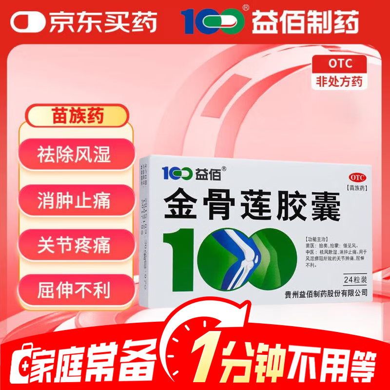 益佰金骨莲胶囊 0.25g*24粒 祛风除湿 消肿止痛 消炎止痛 关节肿痛 跌打损伤 活血化瘀 疏通经络 化瘀通络