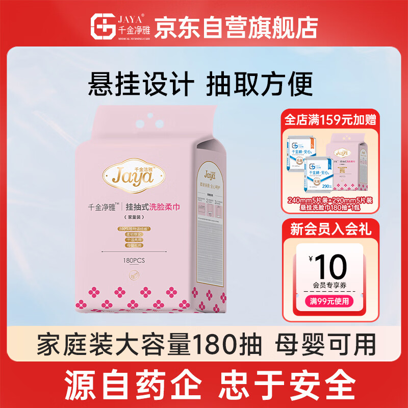 千金净雅千金洁雅挂抽式洗脸巾1提装悬挂式一次性擦脸巾京东自营