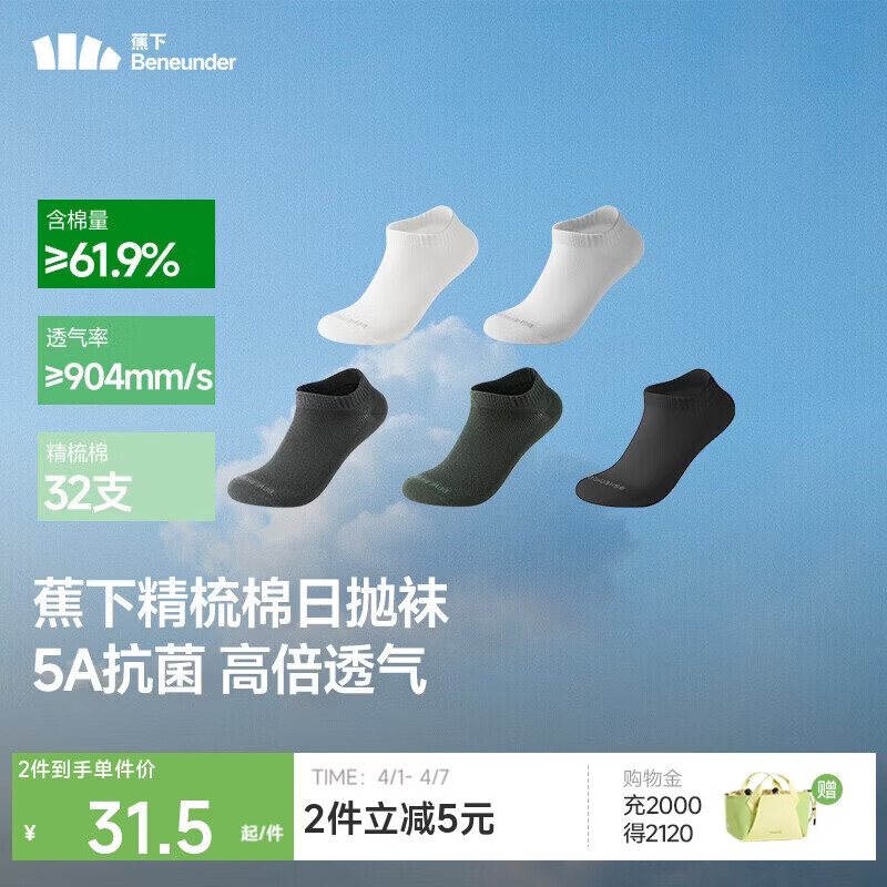 蕉下一次性袜子男士女士日抛袜子短袜短筒精梳棉质防臭透气 5A抗菌