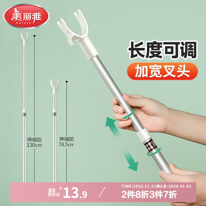 美丽雅 晾衣杆可伸缩撑衣杆金属挂衣杆阳台室内可调节晾衣杆 1只