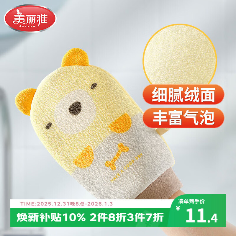 美丽雅搓澡手套细砂双面搓澡神器加厚磨砂男女士加厚搓澡巾搓背搓泥磨砂