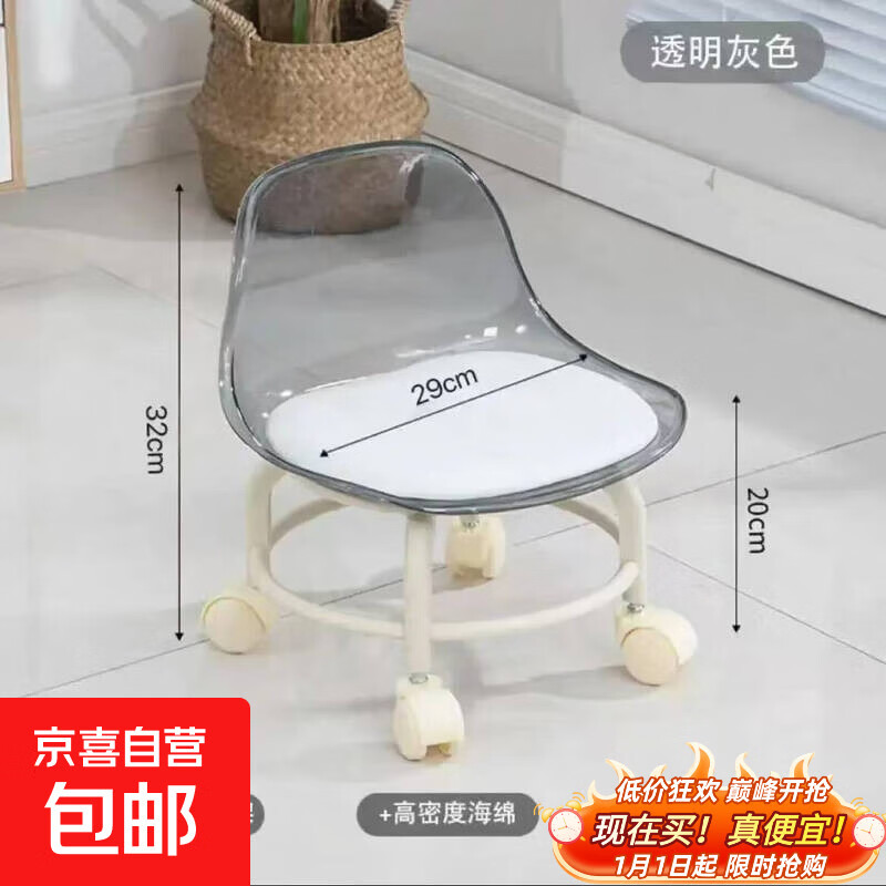 【热销爆款】儿童凳子亚克力万向轮滑轮矮凳儿童带娃小椅子小凳子 透明灰-儿童靠背小椅子