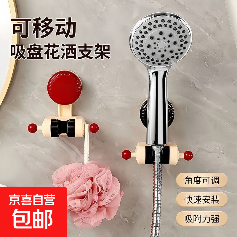 京东物流 吸盘式免打孔花洒支架可移动花洒固定座架支神器 可移动吸盘花洒架【红色】 一只装