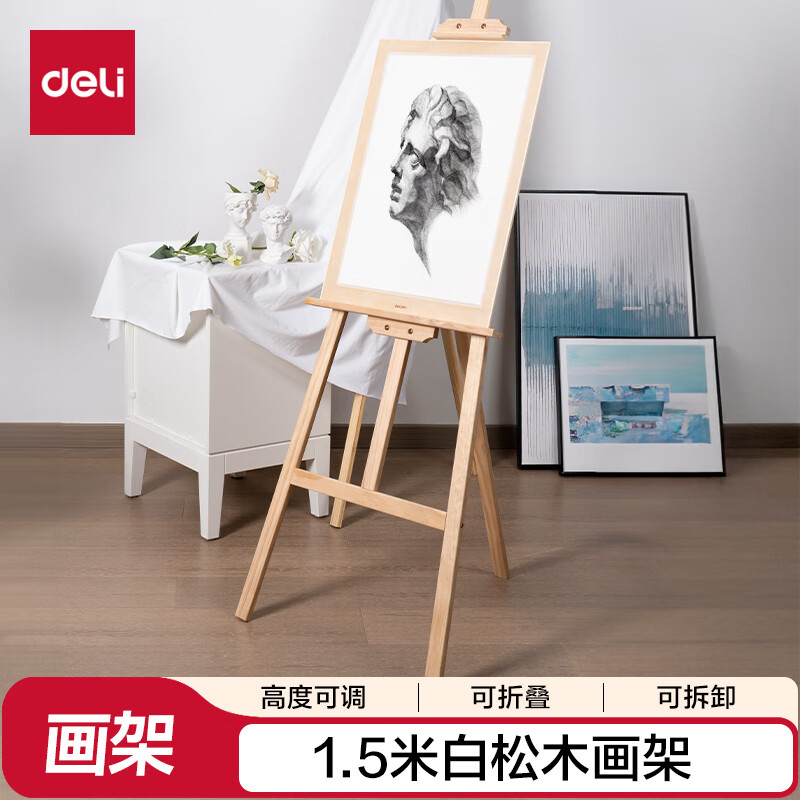 得力(deli)1.5米白松木画架+螺丝刀入门款素描画架油画架子写生便携折叠画架HS915年会展会