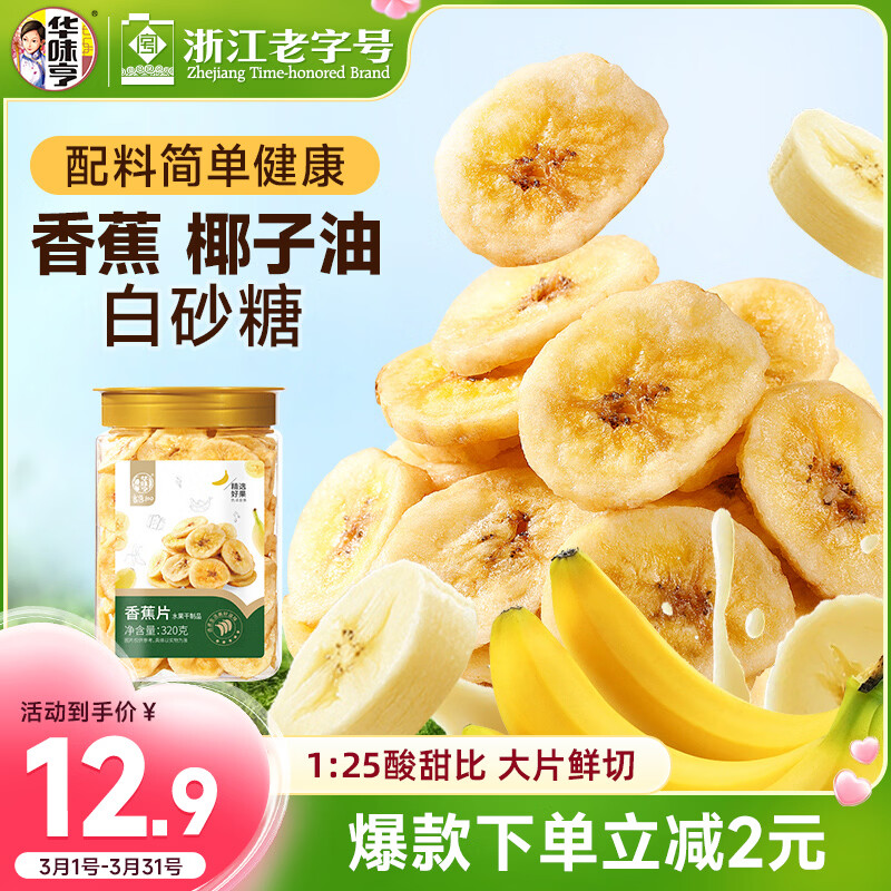 华味亨香蕉片320g/罐 香蕉干脆片蜜饯果干薄脆香甜下午茶儿童休闲零食