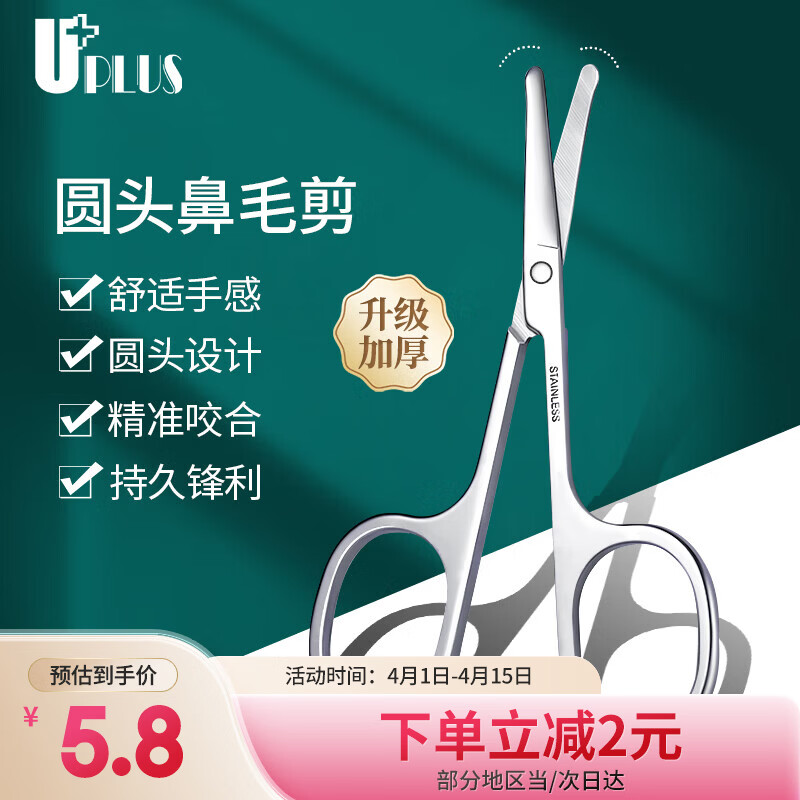 优家(UPLUS)加厚不锈钢圆头鼻毛剪刀修眉毛胡子胡须鬓角美容男士修剪器