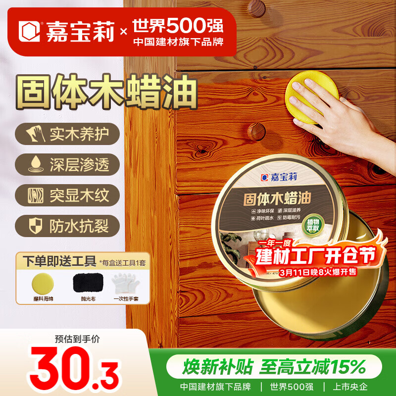嘉宝莉固体木蜡油清漆实木蜂蜡抛光打蜡红木保养专用蜡地板家具蜡200ml