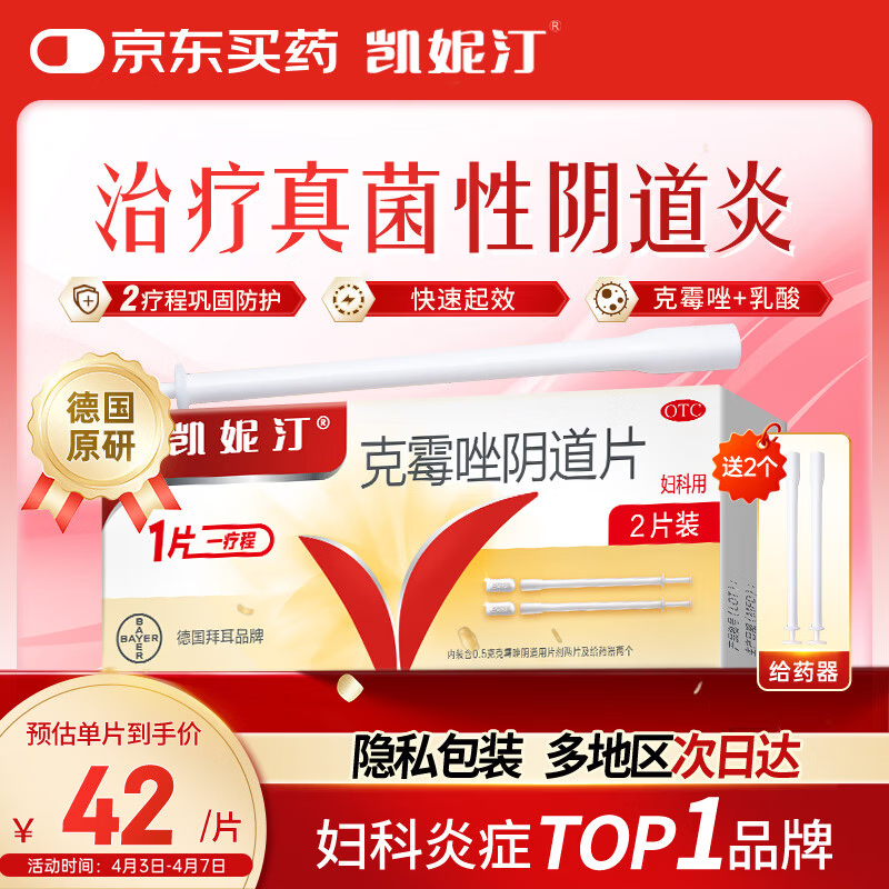 原研药凯妮汀克霉唑阴道片0.5g*2片/盒霉菌性阴道炎内用药妇科用药非处方药瘙痒念珠菌外阴阴道病克霉唑栓剂