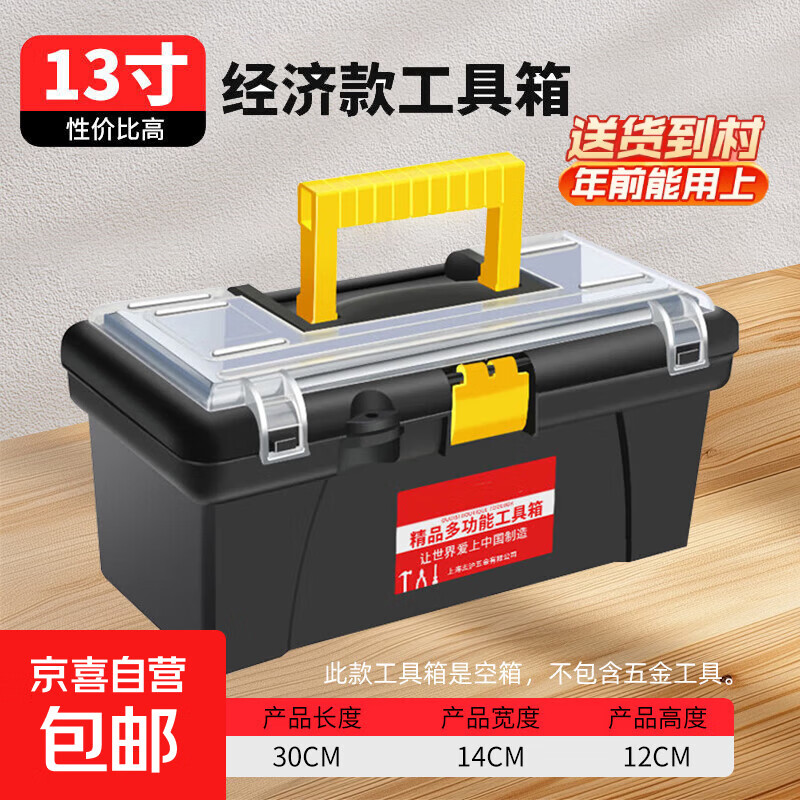 【万人同抢】家用多功能五金收纳箱手提电工工具箱车载维修配件箱 【爆款.黑霸王】13寸加厚(不含工具) 复工爆品