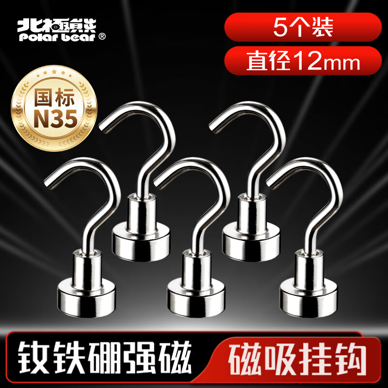 北极熊(Polar bear)磁吸挂钩免打孔磁铁磁性挂钩防盗门冰箱吸铁石门后悬挂挂钩 直钩直径12mm 5个 MH-710