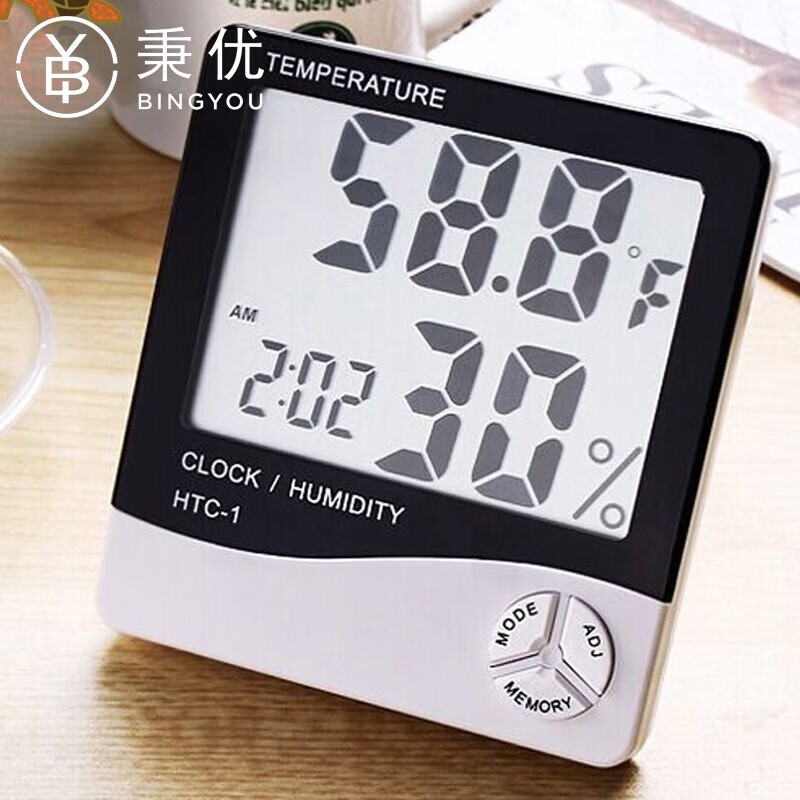 秉优温度计湿度计时钟闹钟大屏幕电子温湿度计数字温度表室内外电子钟
