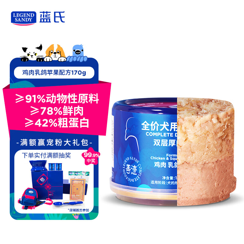 LEGENDSANDY蓝氏狗罐头狗湿粮主食罐鸡肉乳鸽双层厚肉堡170g*1罐尝鲜
