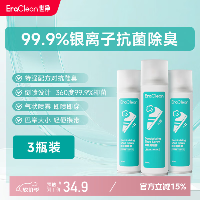 EraClean世净鞋子除臭杀菌喷雾 多类型杀菌除异味 银离子升级款 三瓶装