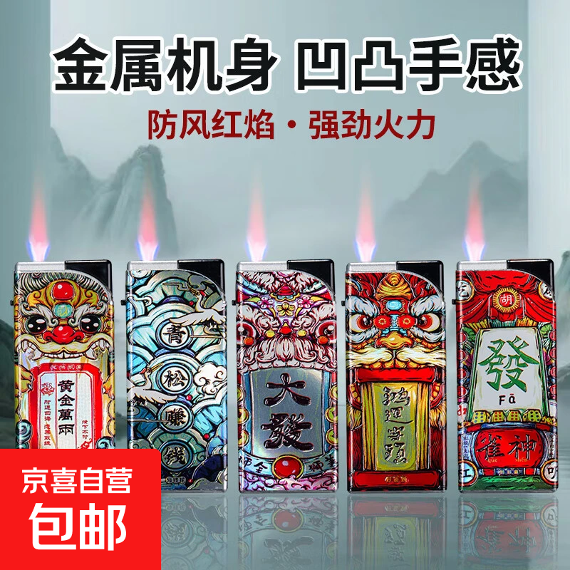 国潮烟盒宽版铁壳金属防风打火机可充气个性高颜值商超批发超划算 国潮 4支