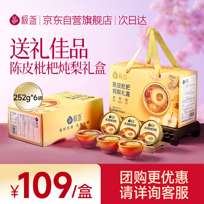 极盏陈皮枇杷冰糖炖雪梨礼盒烤梨小吊梨汤送长辈父母妈妈礼物252g*6碗