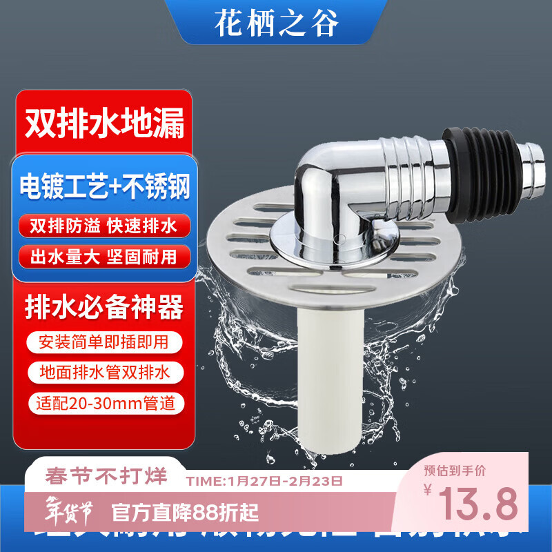 花栖之谷洗衣机下水地漏专用接头防溢水神器地面二合一双排水管密封地漏盖