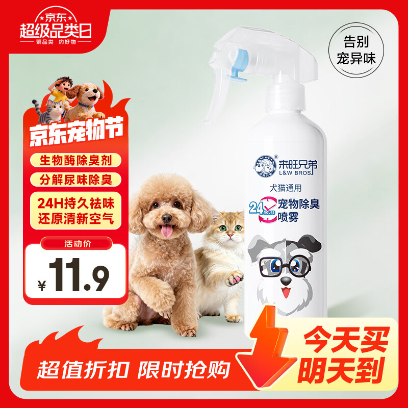 来旺兄弟宠物除臭剂喷雾生物酶狗狗去尿味24小时猫砂祛味神器