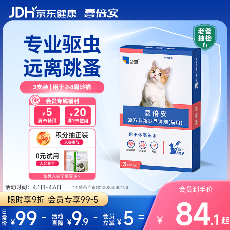 喜倍安 猫体外驱虫药滴剂0.5ml*3支打虫药驱跳蚤复方非泼罗尼
