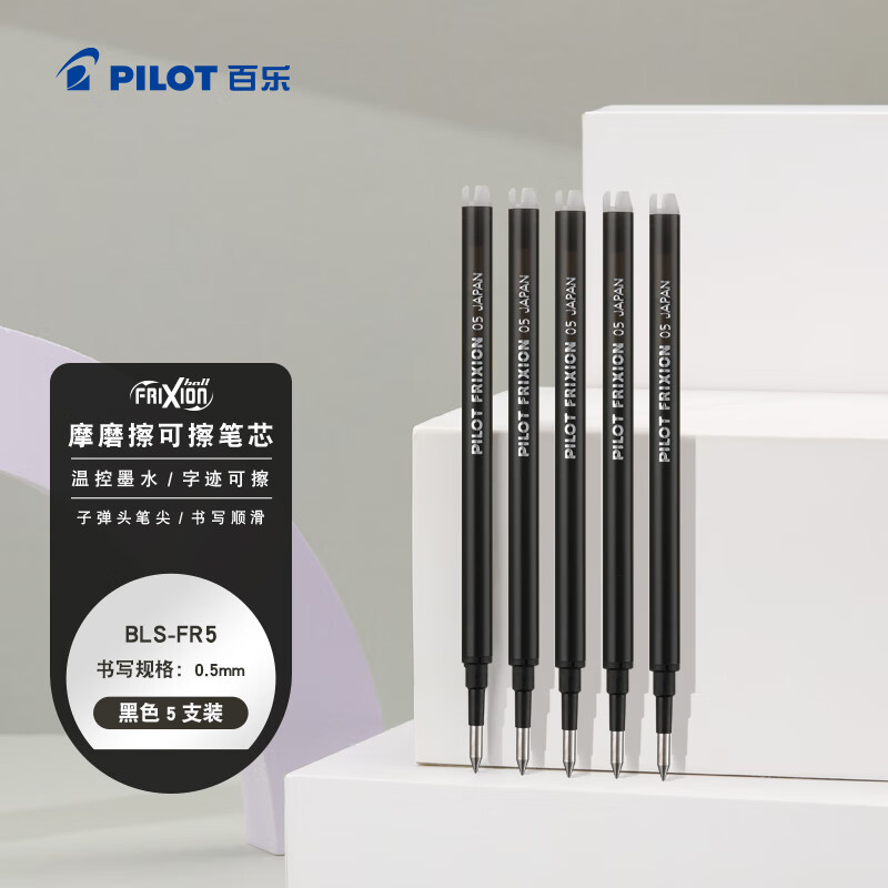 百乐(PILOT)【热门商品】中性笔可擦笔芯子弹头温控可擦水笔办公书写书写文具套 BLS-FR5-B 0.5黑色笔芯 5支