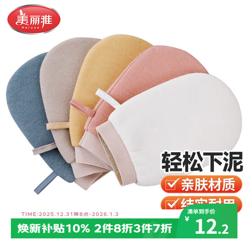 美丽雅搓澡巾神器磨砂手套洗澡巾男士女无痛不伤肤强力搓泥巾1只