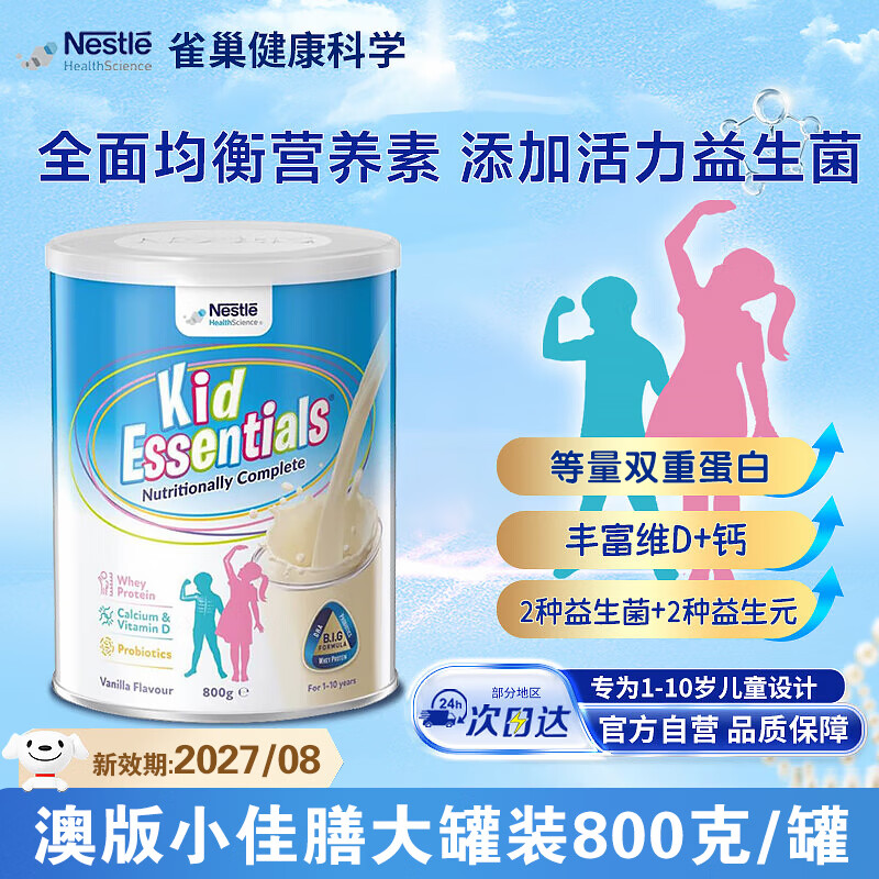 雀巢健康科学(NESTLEHEALTHSCIENCE)小佳膳奶粉澳版儿童成长高能量全面营养粉1-10岁香草味800g