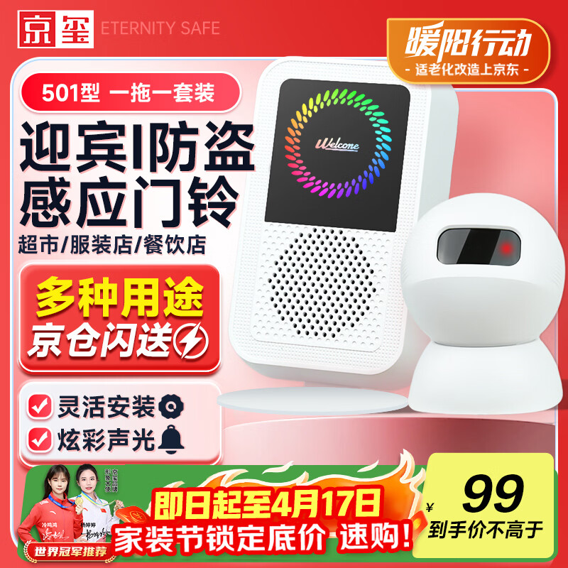 京玺 无线门铃感应迎宾欢迎光临店铺娱乐场所声光迎宾器一拖一套装
