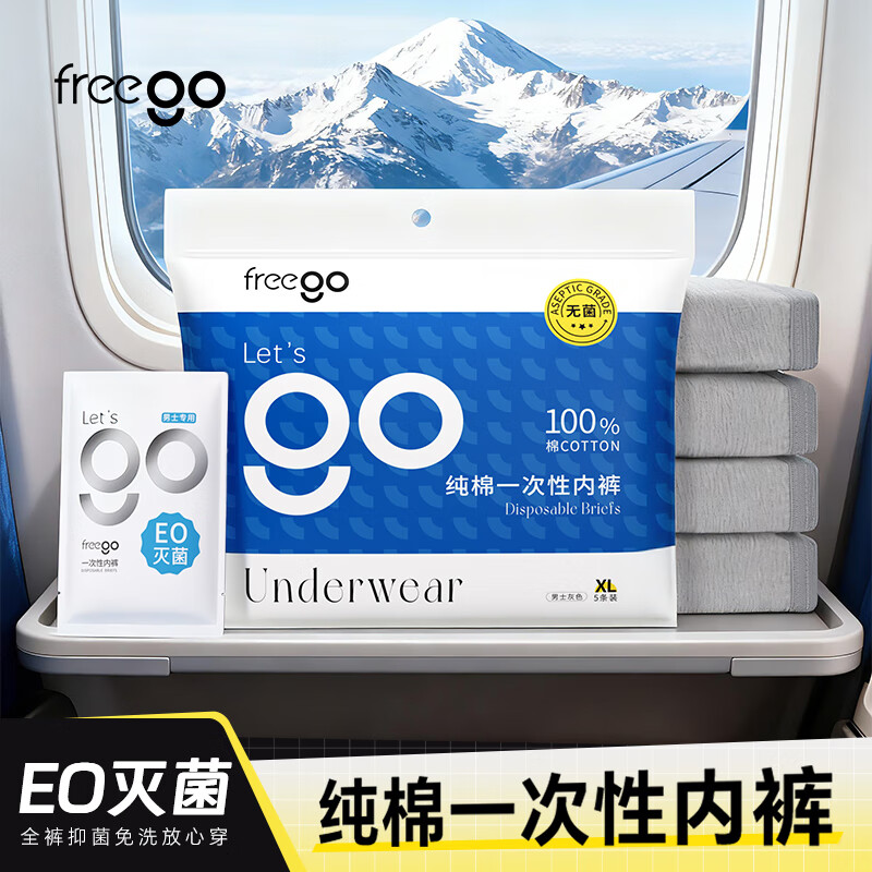 Freego纯棉一次性内裤纯棉灭菌免洗5条独立装旅行出差男灰三角2XL