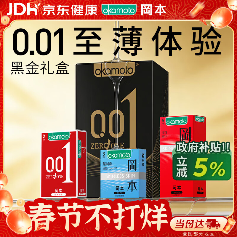 冈本(OKAMOTO)避孕套 001黑金10片(0.01超薄2片+skin8片) 安全套套情趣计生用品