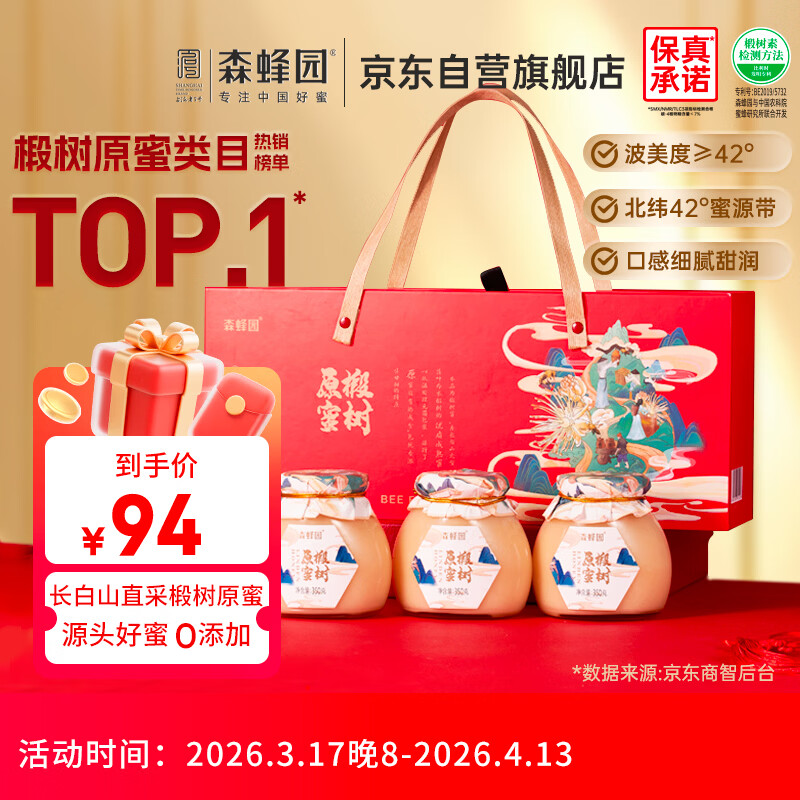 森蜂园长白山椴树雪蜜350g*3瓶蜂蜜礼盒过节节日送礼送长辈礼物