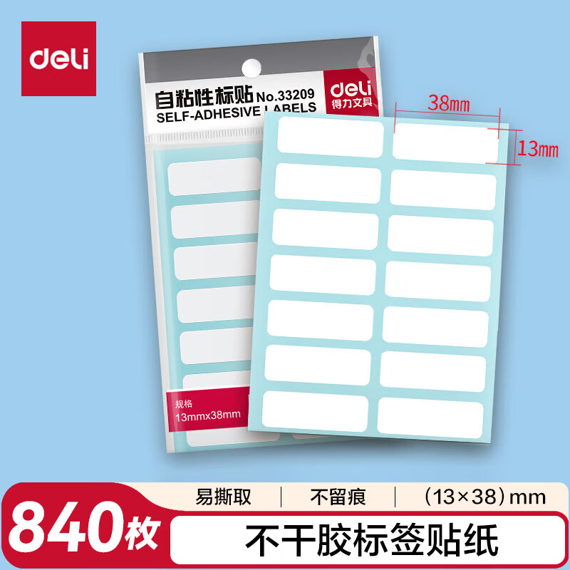 得力(deli)840枚13×38mm不干胶标签便利贴贴纸自粘性标贴 14枚/张33209