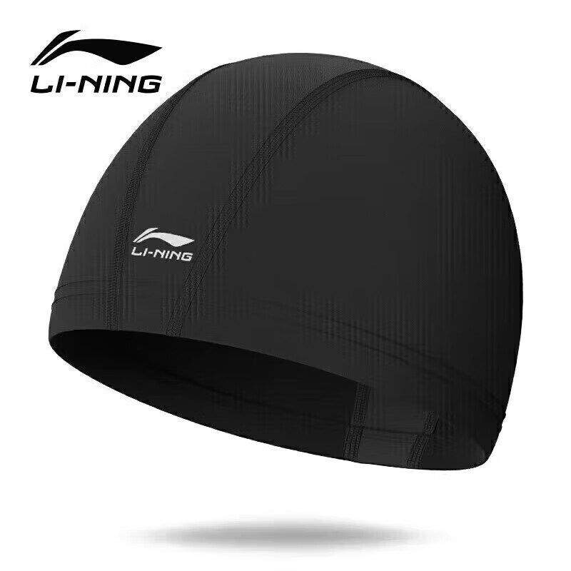 李宁(LI-NING)泳帽男女长发舒适布游泳帽时尚护耳不勒头不粘发泳帽 LSMP151黑色