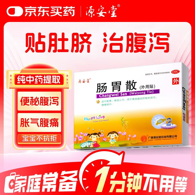 源安堂肠胃散2g*2袋 肠胃贴 儿童腹泻腹胀腹痛 拉肚子 止泻止吐 不含化学渗透剂 含丁香肉桂 小儿脐贴
