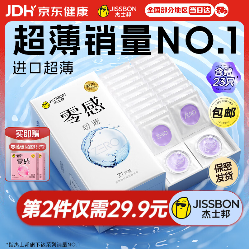 杰士邦避孕套超薄安全套套零感23只001隐形裸感byt男专用含赠计生情趣