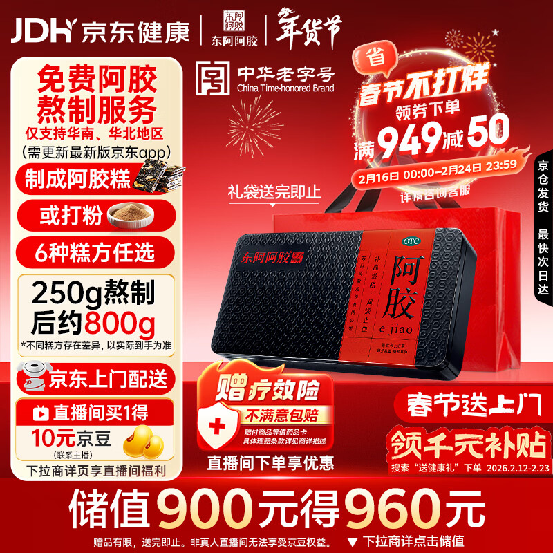 东阿阿胶阿胶250g 熬胶服务 鲜制阿胶糕 补血滋阴 润燥止血用于血虚眩晕不眠