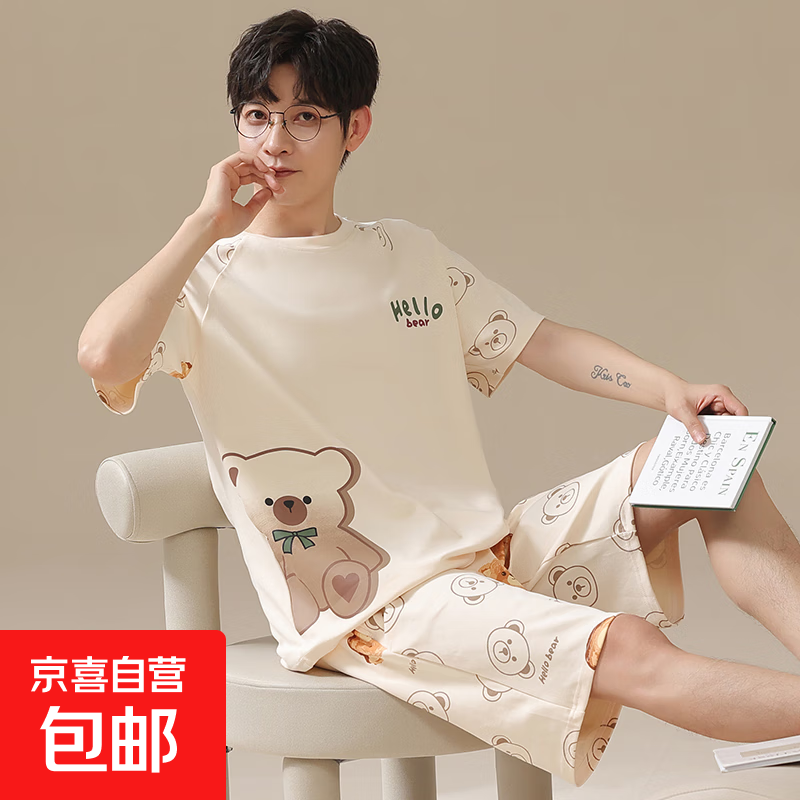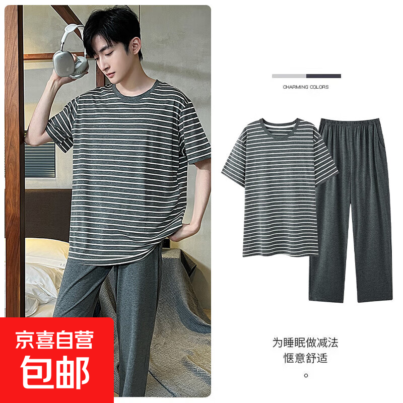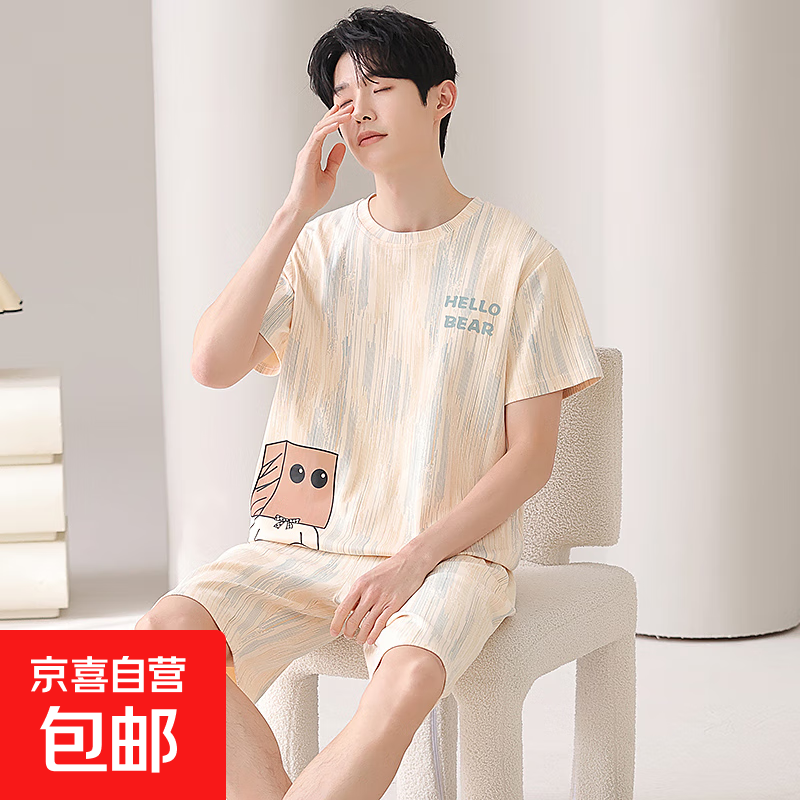 【纯棉】睡衣男款夏季短袖2025新款大码男士休闲可外穿家居服套装 Z58569男款 XL