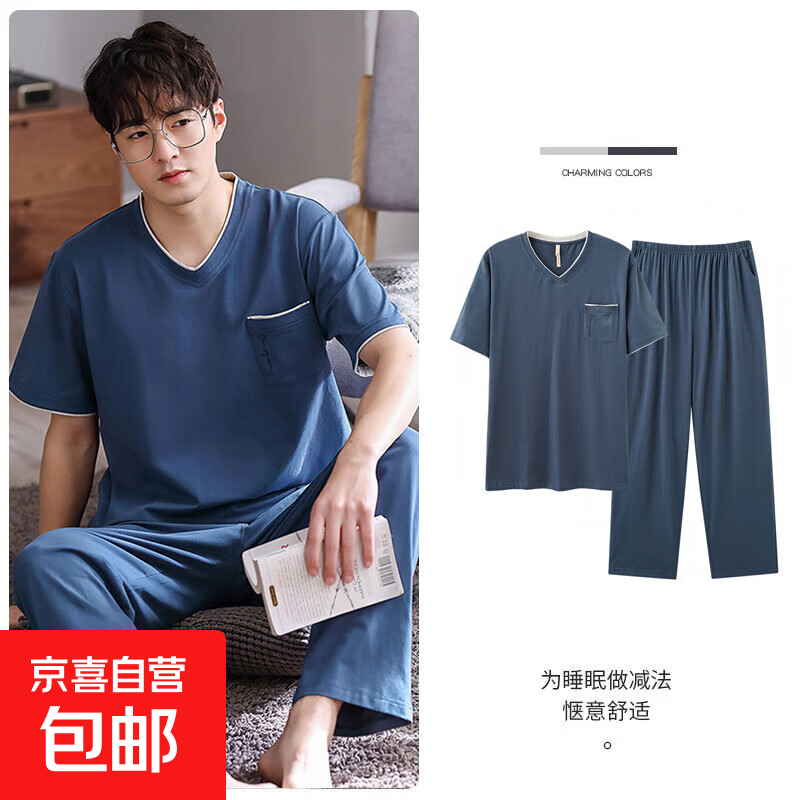 【纯棉】睡衣男款夏季短袖2025新款大码男士休闲可外穿家居服套装 Z58587男款 L