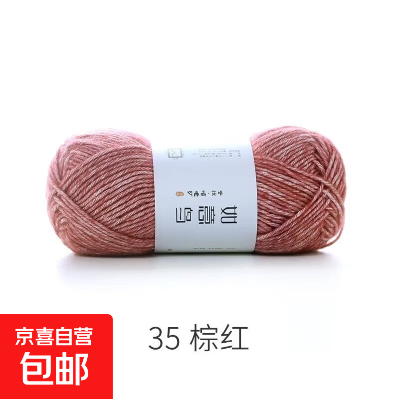 如意鸟喷毛纱婴儿棉线手编棉线围巾线中粗手工diy毛线柔软 35棕红