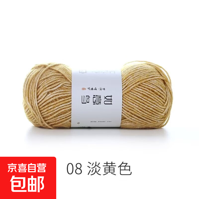 如意鸟喷毛纱婴儿棉线手编棉线围巾线中粗手工diy毛线柔软 08淡黄色