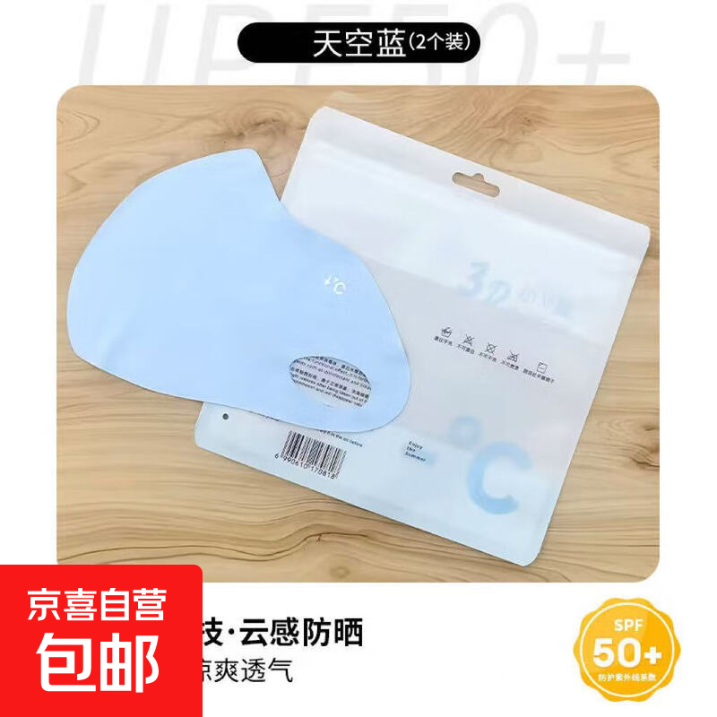 春夏季冰皮防晒口罩防紫外无痕口罩冰丝面罩遮脸冰皮口罩韩式风女 换洗装 空气冰感【蓝色2个】