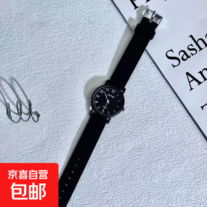 公务员学生中高考试专用石英手表 小众简约冷淡风男女情侣表 大款黑盘