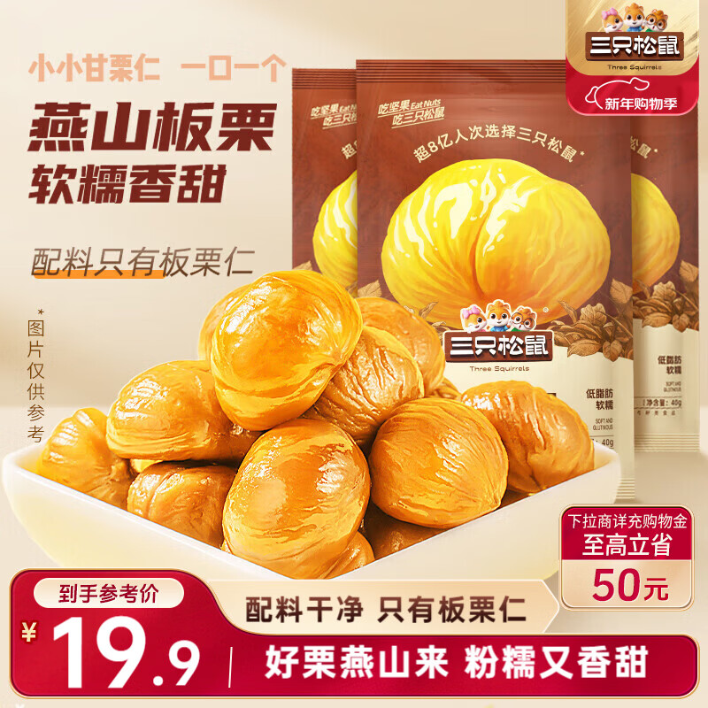 三只松鼠甘栗仁40g*11袋 无壳即食软糯香甜优质板栗仁栗子仁休闲零食坚果