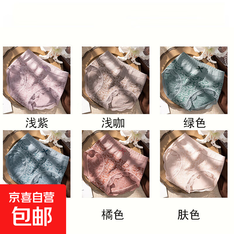 宫廷3.0日系内裤女中腰少女性感蕾丝裤女士棉裆收腹提臀内裤女 6条装【自选颜色/随机】宫廷3代 2XL 【适合140-200斤】