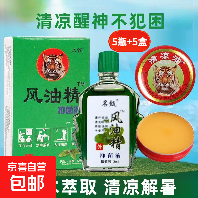 【王牌】风油精正宗老牌提神醒脑清凉防虫止痒防困防晕车清凉油 风油精【5瓶】+清凉油【5盒】