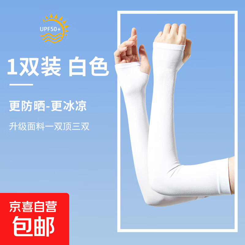 冰袖男夏季防晒袖套女冰丝骑行手套男长款护手臂袖户外运动薄遮阳 白色套指