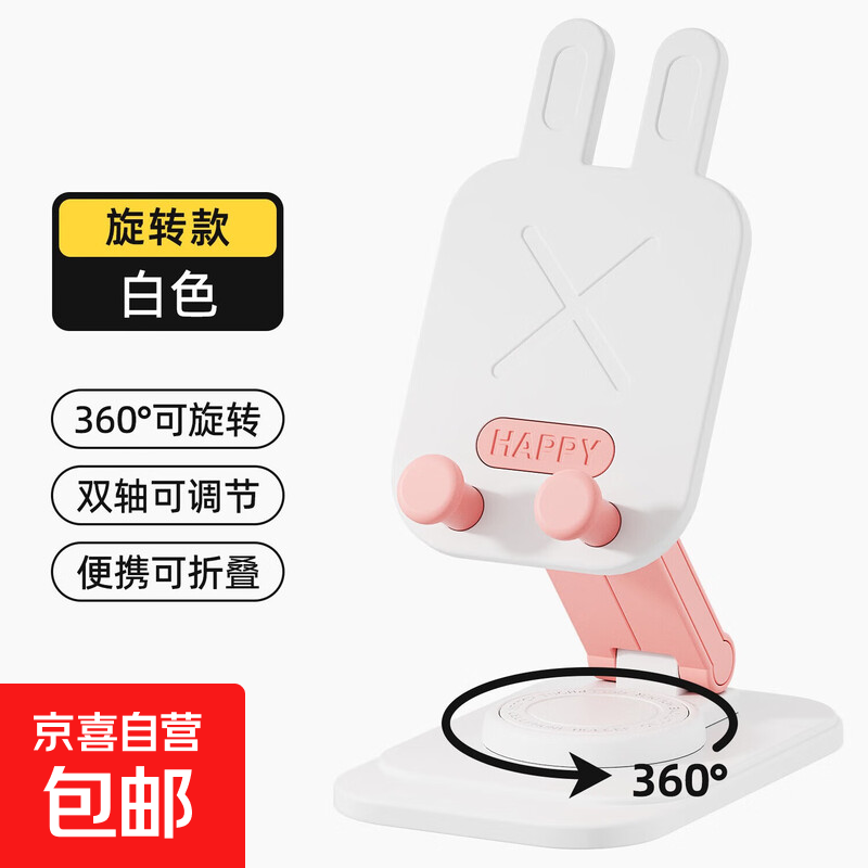 旋转手机支架便携折叠手机架学生办公室追剧看电视神器平板架 白色卡通兔升级款旋转款
