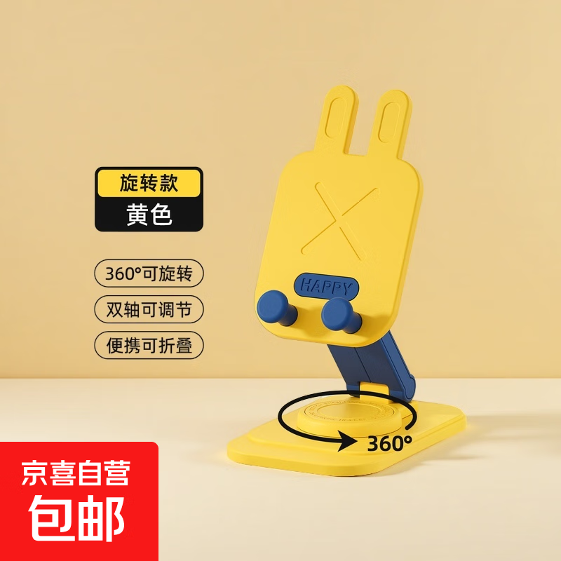 旋转手机支架便携折叠手机架学生办公室追剧看电视神器平板架 黄色卡通兔升级款旋转款