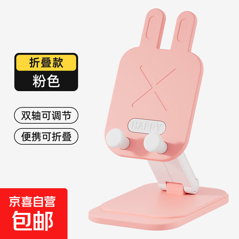旋转手机支架便携折叠手机架学生办公室追剧看电视神器平板架 粉色卡通兔折叠款