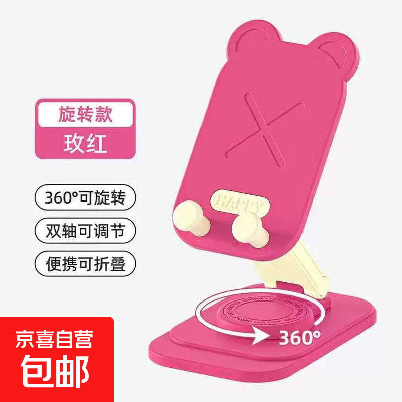 旋转手机支架便携折叠手机架学生办公室追剧看电视神器平板架 玫红 卡通熊升级款旋转款